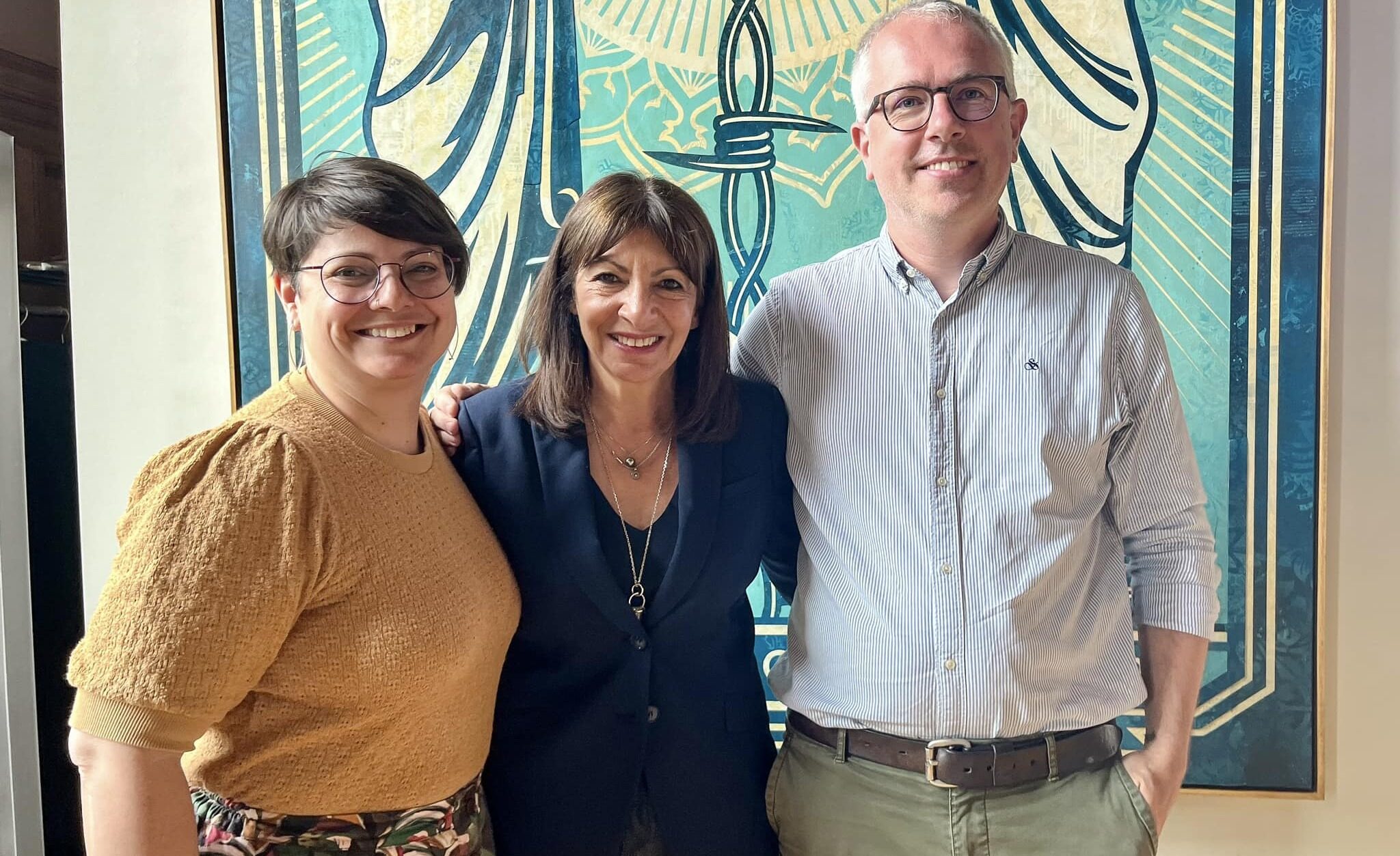 Melissa and Chris Bruntlett with Paris Mayor Anne Hidalgo (centre).