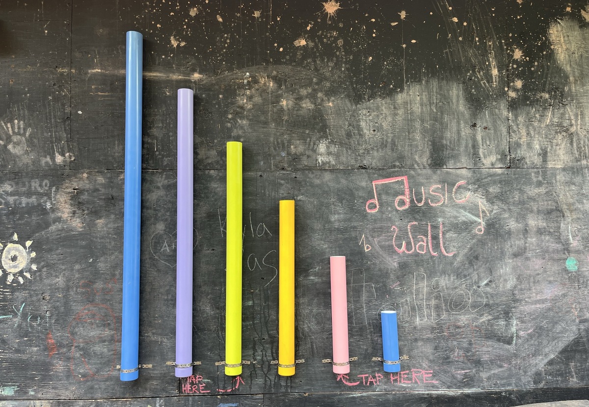 Get ready to make some noise! The Music Wall turns the garden into a stage, where colourful tubes invite kids to tap, strike and explore all the different sounds they can create.