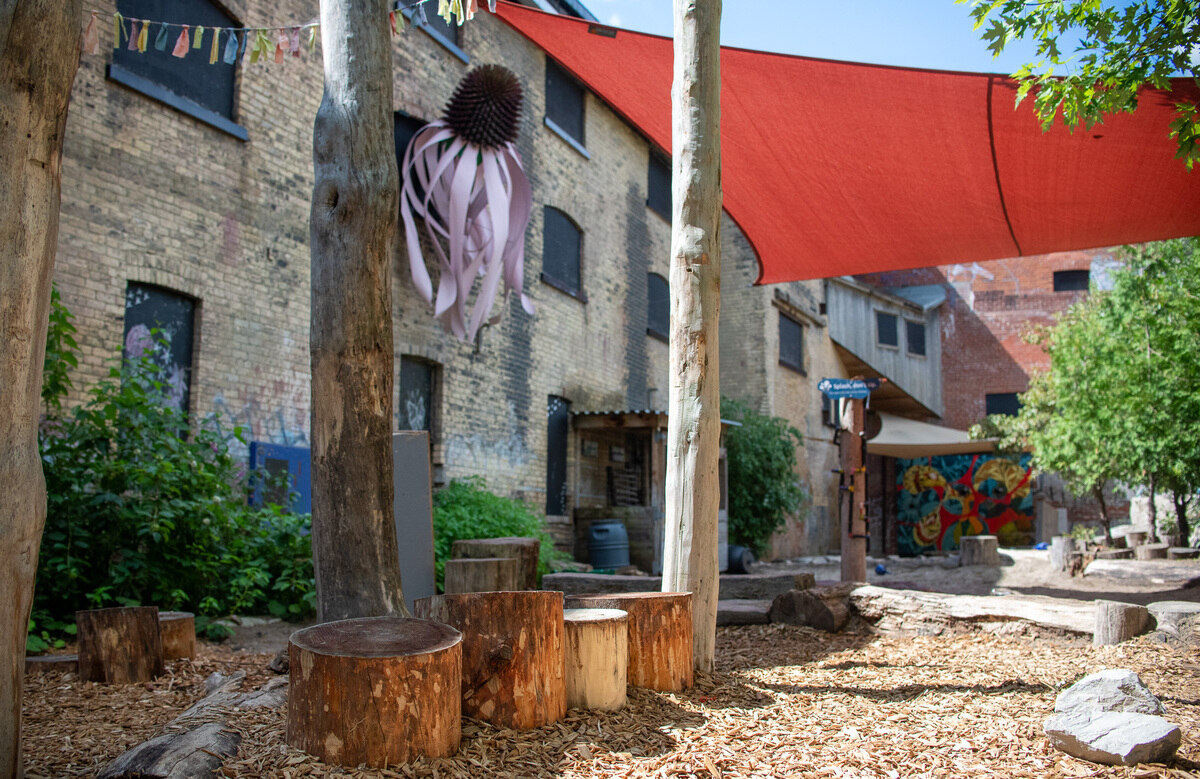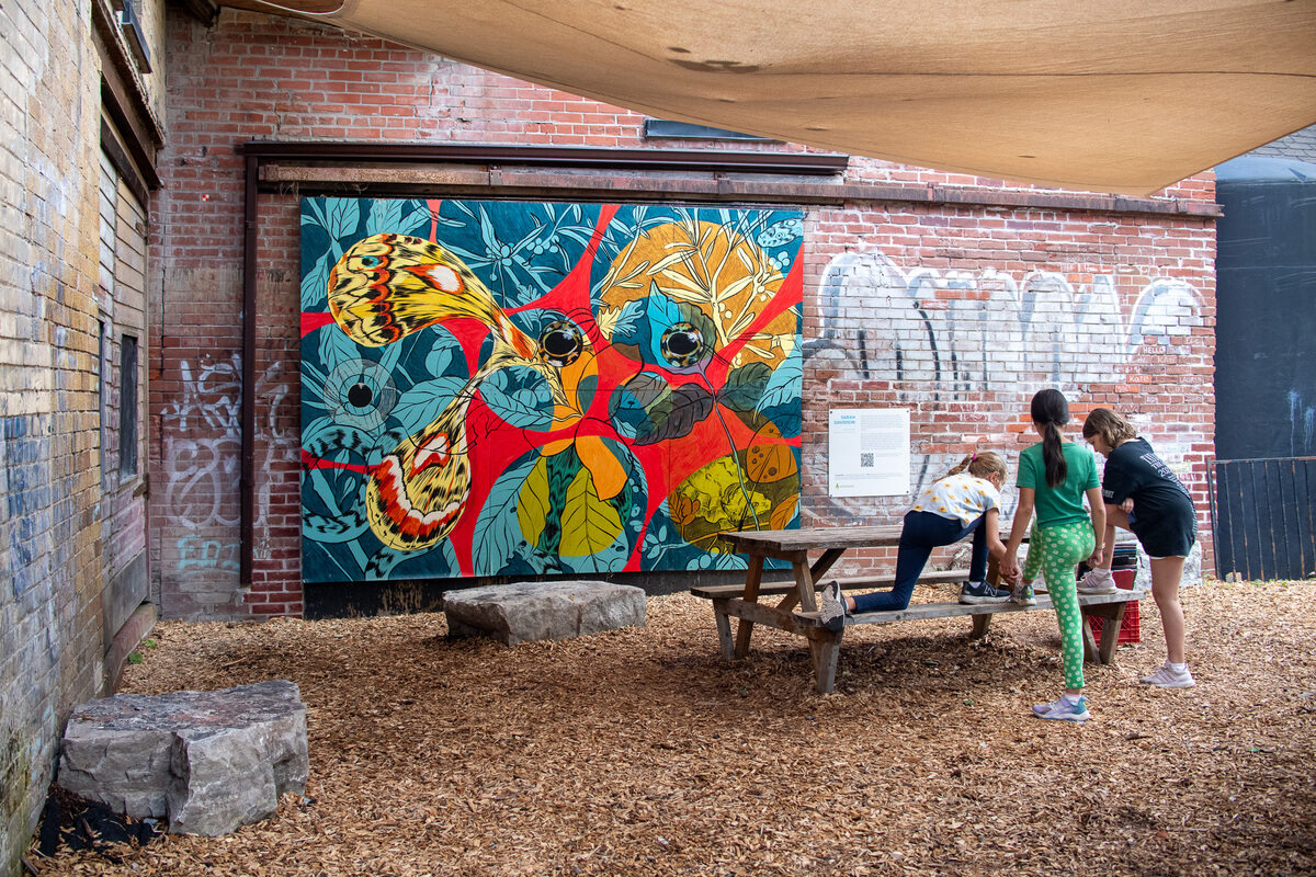 The Outdoor Classroom is a welcoming gathering space with armour stone seating and a beautiful nature-inspired mural. It’s perfect for storytelling, sharing ideas, and connecting with each other while surrounded by nature.